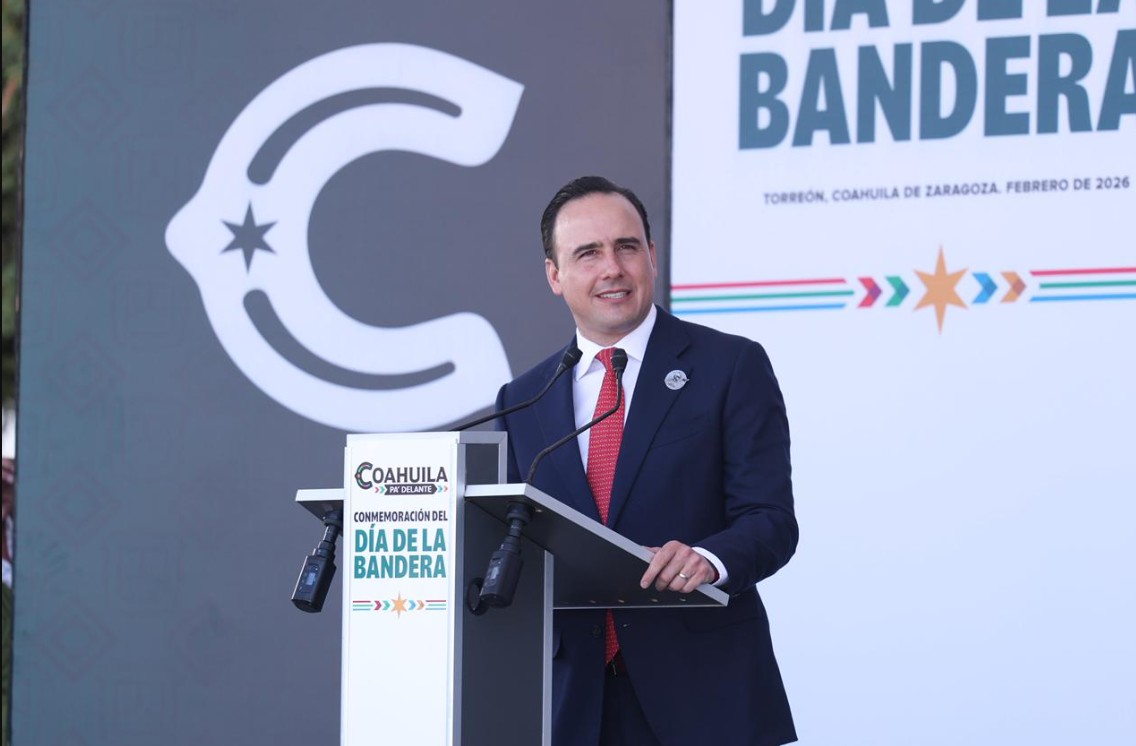 Torreón, Coahuila.-Desde Torreón, el gobernador Manolo Jimónez Salinas, junto al general Fernando Colchado Gómez, comandante de la XI Región Militar; el alcalde Román Alberto Cepeda González, así como mandos militares, autoridades estatales y municipales, conmemoraron el Día de la Bandera, en donde reiteró su compromiso de seguir trabajando con voluntad y coordinación por el bien de Coahuila y de México.