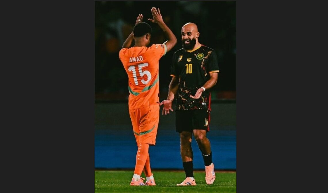 El delantero de Camerún, Bryan Mbeumo, pudo haber ganado el partido con el último disparo, pero fue frustrado por el defensa marfileño Odilon Kossounou, quien se lanzó frente al balón y recibió todo su impacto entre las piernas.