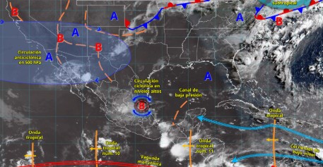 Además del desplazamiento de la onda tropical núm. 11 sobre el sureste mexicano e inestabilidad atmosférica, propiciarán chubascos y lluvias puntuales fuertes en el norte, occidente, centro, oriente y sureste del territorio nacional, habrá lluvias puntuales muy fuertes. Todas las lluvias, se acompañarán con descargas eléctricas, rachas de viento y posible caída de granizo.