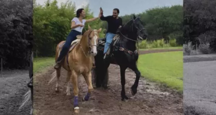La pareja disfrutó de una tarde tranquila en El Soyate, el emblemático rancho ubicado en Tayahua, Zacatecas, que perteneció a los abuelos paternos de Ángela Aguilar, Antonio Aguilar y Flor Silvestre.